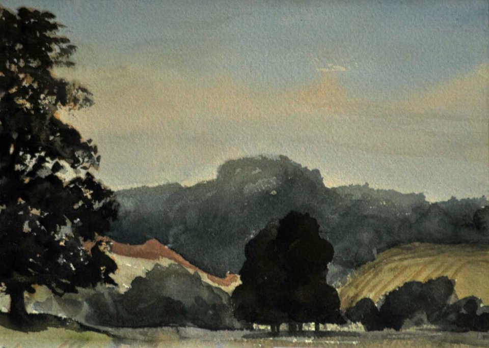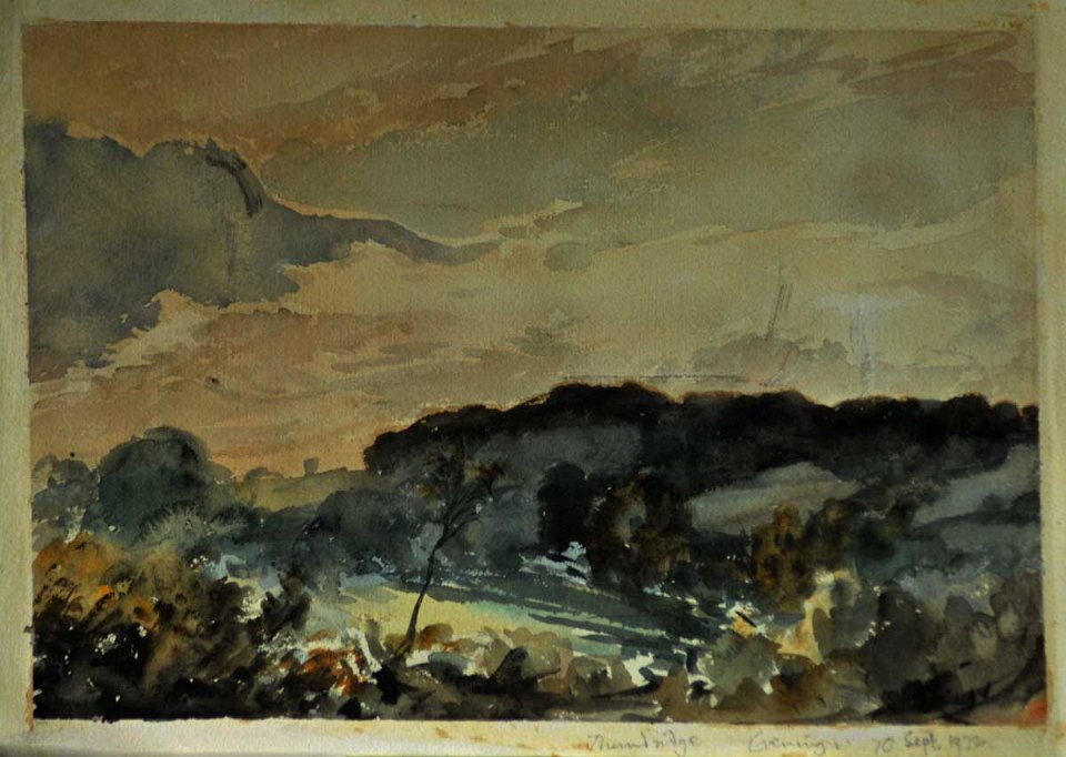 Wade's Wood from the Sledging Field behind School Plantation in the evening (dated 10 Sept. 1970)